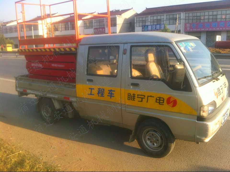 車載剪叉式升降機(jī)是集四輪移動(dòng)與二輪牽引式于一身,采用汽車底盤做平臺(tái)底架,利用汽車發(fā)動(dòng)做動(dòng)力或電瓶驅(qū)動(dòng),既可行駛又可驅(qū)動(dòng)升降機(jī)。車載剪叉式升降機(jī)以小型貨車(汽車)或電瓶車為載體,移動(dòng)靈活迅速,操作簡單,作業(yè)范圍廣。車載剪叉式升降機(jī)采用剪式升降結(jié)構(gòu),剪叉結(jié)構(gòu)采用優(yōu)質(zhì)矩形錳鋼管制作,整體強(qiáng)度高,載重量大,升降穩(wěn)定性好,廣泛用于城建、油田、交通、市政、室外廣告等行業(yè)。